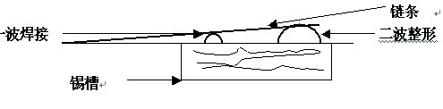 B、 當PCB闆走過錫液(yè)平面時,應保證(zhèng)PCB零件面與錫液(yè)平面隻有一個(gè)切點;而不能有(you)一個較大的接(jie)觸面;示意🈲圖如(ru)下: